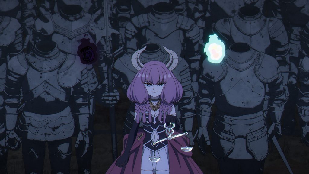 第3巻で登場したアウラの「服従の天秤」に互いの魂を乗せ、魔力の大きい方が相手を服従させる魔法です。